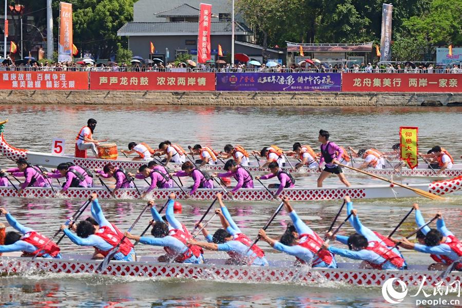 社会男子组200米直道赛。人民网记者 陈博摄 值得一提的是,作为两岸融合的重要文化体育品牌,“嘉庚杯”“敬贤杯”海峡两岸龙舟赛,不仅是一项群众性体育竞技活动,还是一座连接两岸同胞心灵的桥梁。不少参赛的台湾同胞表示,参加海峡两岸龙舟赛,不仅增强了同舟共济的团队感,还在两岸共同的文化认同中,增进了两岸文化的交流与融合、增强了两岸同胞的心灵契合。
