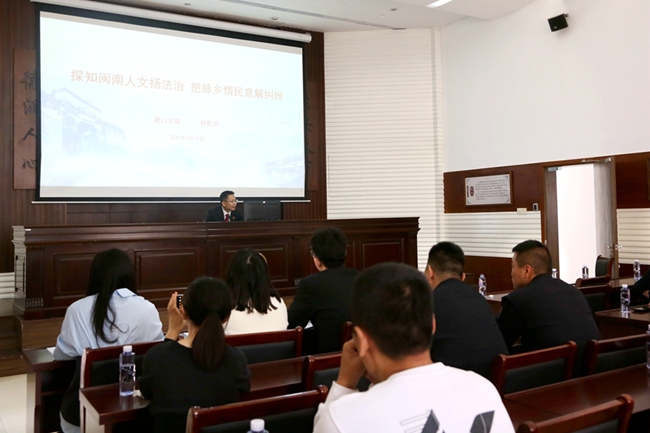 集美法院灌口法庭负责人进行“闽南文化融入解纷实践”分享。集美法院供图 调解能力的提升不仅需要法治逻辑,还需文化滋养。近期,一场主题为“传承闽南文化 共绘厝边‘枫’景”的座谈交流会暨调解培训活动在集美法院灌口法庭开展。法庭负责人为灌口镇派出所、司法所及村居调解干部分享了闽南文化融入解纷的实践经历,讲解调解技巧等。 此外,集美法院还设立了调解文化馆,与集美区闽南文化研究会合作,收集刻有裁决文告等内容的厦门古代示禁石刻10篇,弘扬善用法律解决纠纷的法治精神;梳理展示闽南调解俗谚55条、家训12条、典故4个,深挖诚信互助、睦邻友好、团结互让等文化内涵,融入裁判文书说理、调解培训、普法宣传等工作,使文化底蕴与法治精神交相辉映,引导基层调解员运用闽南文化化解矛盾、止讼息争。 从点滴实践到建章立制,集美法院将经验固化为长效治理动能。例如,总结安置房物业纠纷调解经验,制发“调解思维导图”和操作指南,以14个要点指导46名调解员精准调处,推动涉诉纠纷降至个位数;梳理非诉调解典型案例38个,提炼调解要点及法律规定,为综治中心提供《集美区基层矛盾纠纷调解典型案例汇编》《青年创业就业劳动用工法律风险防范指引》等汇编白皮书5套,指导专业化领域纠纷预防化解,推动了调解能力从“点上突破”到“面上开花”,助力社会治理法治化、专业化。 据介绍,2024年7月以来,集美法院委托综治中心调解成功纠纷1179起,调解成功率45.2%。根据当事人申请,依法审查综治中心调解达成协议的案件,开展司法确认75件,对未能达成调解协议的简易案件,开展速裁快审128件,实现司法从“末端”向治理“前端”延伸,持续将矛盾化解于早、化解于小,不断夯实基层社会治理的根基。(李昌乾 林以芳) |