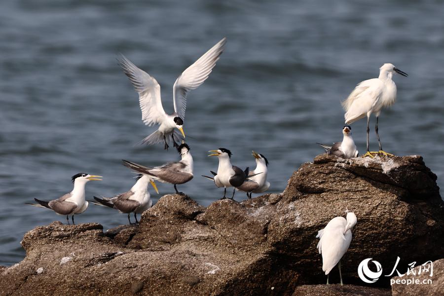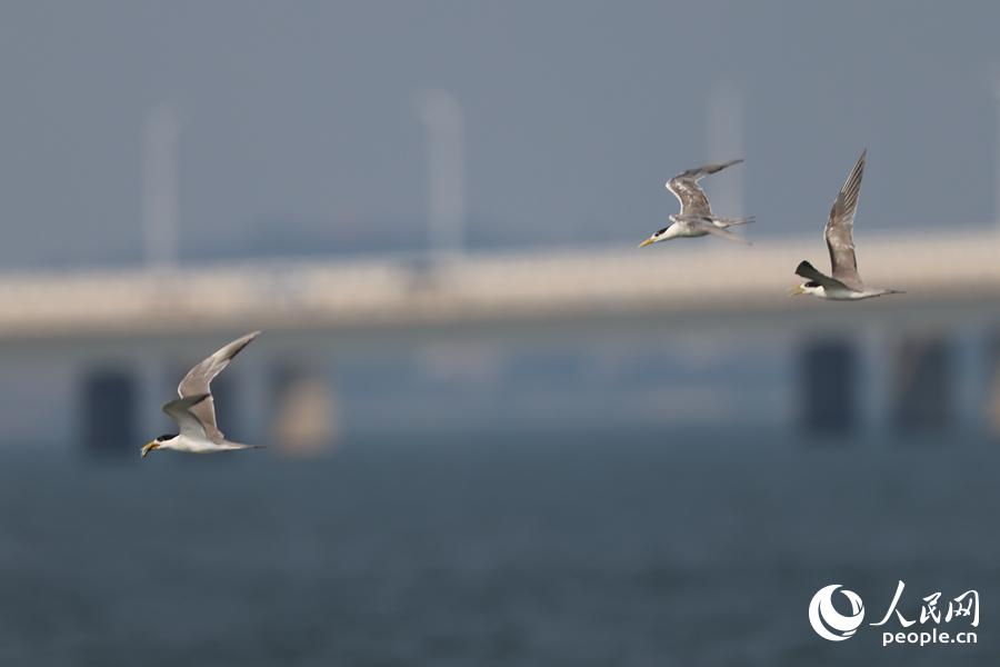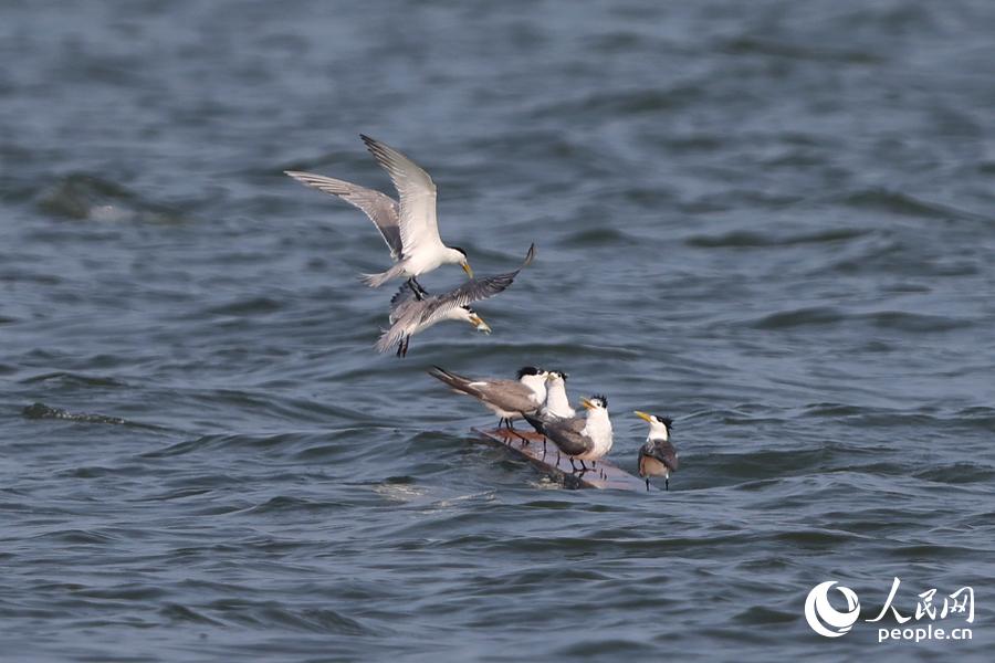成群大凤头燕鸥“做客”厦门集美。人民网记者 陈博摄
