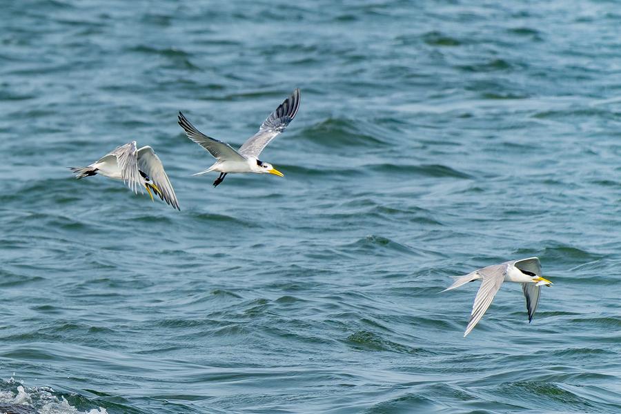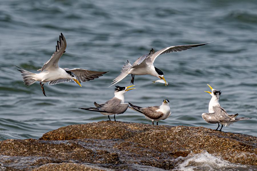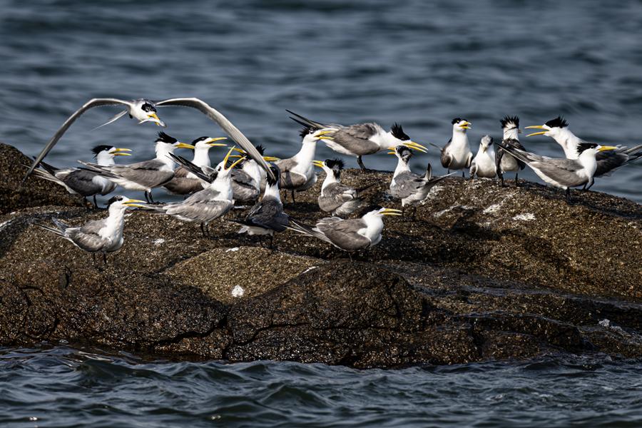 30余只大凤头燕鸥齐现厦门集美 成海上靓丽风景线
