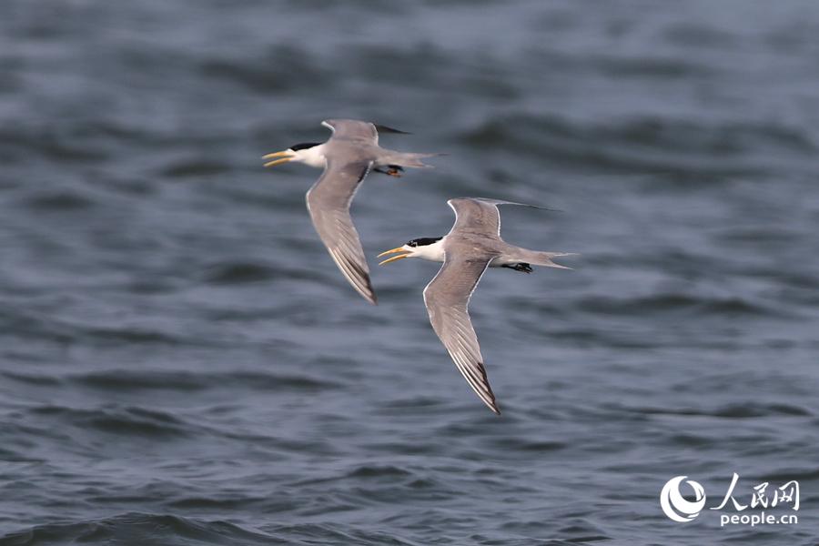 比翼双飞的大凤头燕鸥。人民网记者 陈博摄
