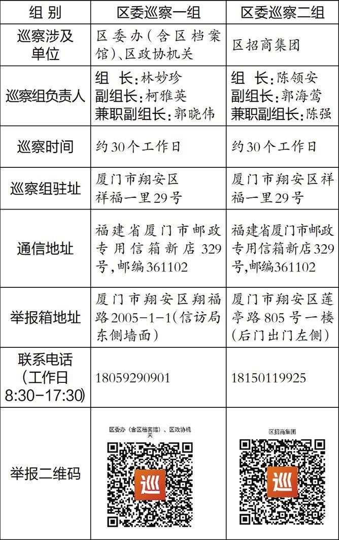 五届翔安区委第八轮第二批巡察展开 厦门日报讯(记者 曾嫣艳 通讯员 柳舒瑜)根据《中国共产党巡视工作条例》《关于市县党委建立巡察制度的意见》《中共翔安区委巡察工作实施办法》以及省、市、区委相关规定和部署要求,经中共翔安区委巡察工作领导小组研究决定,自2025年10月27日起对区委办(含区档案馆)、区政协机关、区招商集团开展常规巡察。
