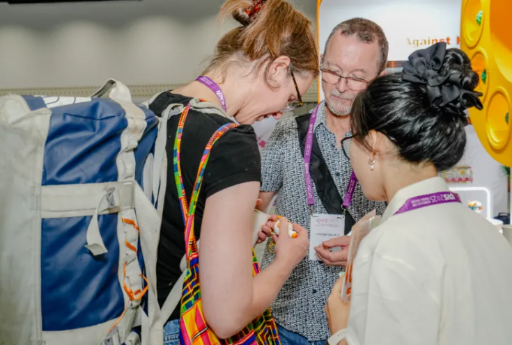 万泰疫苗以“心佑全球,共防HPV”为主题设立展台,吸引了众多国际学者与潜在合作伙伴驻足交流。