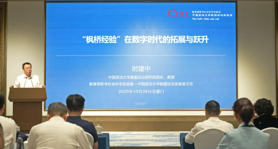 10月29日上午,国家重点研发计划“面向社会风险系统治理的‘数字枫桥’关键技术及应用示范”项目思明区示范点应用示范启动会在海丝中央法务区思明示范区举行。国内社会治理领域权威专家围绕项目核心议题展开深度探讨。 中国政法大学数据法治研究院院长时建中教授以“‘枫桥经验’在数字时代的拓展与跃升”为题,深刻阐释了数字技术与传统治理智慧融合的时代价值。