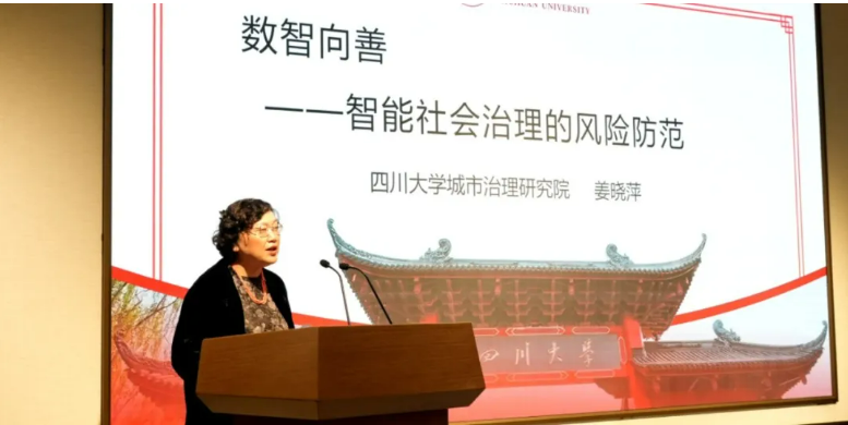 四川大学城市治理研究院院长姜晓萍教授聚焦“智能社会治理的风险防范”主题,从风险识别、预警、处置全链条提出系统性解决方案。