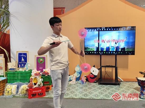 台青许亚恩带来空竹表演(东南网记者 刘学佳 摄) 东南网10月30日讯(本网记者 夏菁 刘学佳)10月30日,第十六届海峡两岸(厦门)文化产业博览交易会(简称“海峡两岸文博会”)在厦门国际会议展览中心拉开帷幕。本届展会不仅首次设立“闽台乡建乡创融合发展成果展”,更设置12个台湾地区主题馆,以文化为桥深化两岸合作。 自创办以来,海峡两岸文博会始终把握对台定位,以搭建两岸文化交流“高架桥”为核心,不断加大与台湾文化业界特别是民间协会的合作力度。本届参展机构覆盖整个台湾地区,生动诠释了文博会作为“两岸文化产业合作第一平台”的强大向心力与时代吸引力。 本届海峡两岸文博会精心构筑多元交流场景,共设置12个台湾地区主题馆,200多个机构、行业协会、品牌企业,以及500余位专家学者、工艺大师、专业客商、台青代表参展参会,其中24个机构、81名台胞首次参展,集中展示台湾茶、漆艺、少数民族工艺、设计IP、文旅消费品等多元内容。 首次设立的“闽台乡建乡创融合发展成果展”以中华传统文化“二十四节气”为策展思路,邀请10余位台青和居民共同演绎乡建乡创的故事,着重展现集美后溪村、翔安东园村、同安田洋村以及其他特色文旅村落。展区突出台青参与整村运营及“研学+”模式,展现通过祖地寻根、新媒体联动、农房改造与民俗体验等形式,促进两岸血脉重逢与文化共融的合作成果,并结合AI体验与舞台剧形式进行生动呈现。现场,台青许亚恩带来了空竹表演,他表示,1949年他的爷爷把空竹带到台湾,2025年,他踏着爷爷的足迹回到大陆,“爷爷带去的是乡愁,我带回的是这份对回家的期盼。” “台湾潮流文创展”呈现20余位知名青年主理人的新媒体艺术作品,带来变形变速硅胶滤设计杯以及环保咖啡周边产品,高性能超细纤维新材料清洁擦拭布等创新产品,涵盖创意文具、精工饰品、新媒体艺术等多个品类。 此外,金门馆连续十六年参与海峡两岸文博会,深刻展现了厦门与金门之间的深厚情谊及文化的高度融合。展馆围绕历史语言、岛屿风貌与在地符号,生动呈现闽南语发展渊源。