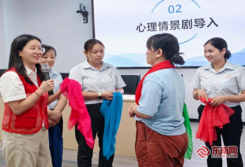 心理减压剧场活动,职工从中感受压力的来源(集美区社区学院供图)