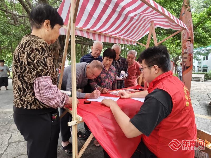 后溪镇社区老人登记咨询养老问题(集美区志愿者联合会供图)