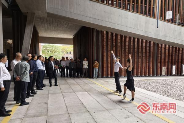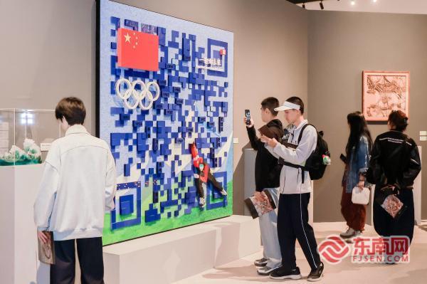 舞者为来宾表演国标舞(东南网记者 刘玮 摄) “打破边界,让艺术走进生活”是本届大展的策展巧思。大展策展人、清华大学奥林匹克艺术研究中心副主任宿志鹏介绍,本届展览规模实现跨越式提升,展陈设计更是暗藏匠心,例如“直角墙面”模拟温馨的家庭场景,让观众在熟悉的氛围中与艺术对话,颠覆传统美术馆的严肃疏离;“蒙太奇式”的陈列方式将不同风格的作品并置,看似独立的创作在空间中碰撞出新的叙事,如同体育竞技中的协作与突破。 展览的魅力更延伸至户外天地,主办方结合金沙书院整体空间和海沧湖环湖慢跑道的整体氛围,精心设置观展路线,营造创新型的沉浸式展览空间,打造沉浸式观展体验。例如,金沙书院的庭院间,国标舞蹈速写《共潮而生》随风轻摆,线条勾勒出的动感身姿与书院飞檐斗拱相映成趣,建筑的古朴、体育的活力与艺术的灵动在此刻无缝交融,恰如马约翰先生倡导的“身心并重的体育审美思想”。湖畔的大草坪上,高7米的雕塑作品《亟待商榷的命名》静静矗立,形似“大白菜”,耐候钢材质在光影中流转,成为游客驻足拍照的“网红地标”。 “本是来书院寻一份静谧,却邂逅了满院惊喜!”来自泉州的王女士手持相机,镜头对准展品,笑意盈盈地说,“这些作品既有艺术高度,又具有互动性,值得花一下午细细品味。”海沧市民孙先生则是大展的“回头客”,他感慨道:“去年就被大展深深吸引,今年的展览质感更上一层楼,周末一定要带孩子来感受艺术与体育的魅力。”