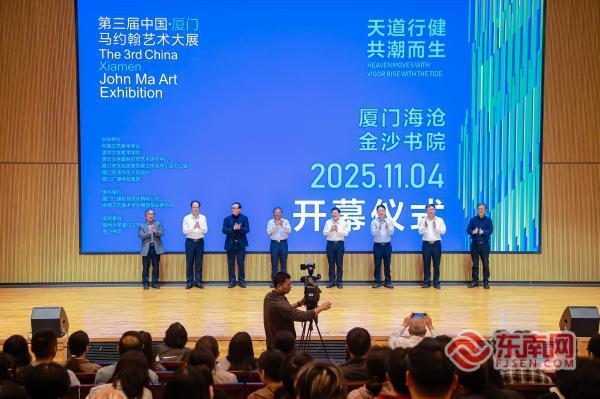 第三届中国(厦门)马约翰艺术大展启幕(主办方供图) 东南网11月4日讯(本网记者 刘玮 卢超颖)11月4日下午,第三届中国(厦门)马约翰艺术大展在厦门海沧金沙书院启幕。活动围绕贯彻落实党的二十大报告“建设体育强国”的部署要求与党的二十届四中全会“激发全民族文化创新创造活力,繁荣发展社会主义文化”重要精神,本届大展以“天道行健,共潮而生”为主题,根植中国传统文化精神与马约翰教授体育教育理念,紧扣厦门海洋文化基因,将体育与艺术深度融合,用独特的艺术语言抒写“更快、更高、更强”的奥林匹克精神,推进奥林匹克的精神传承与文化创新,以体美共育推动城市文化建设。 据悉,马约翰艺术大展是国内具有专业高度与权威性的体育艺术美展。本届大展特邀徐冰、苏新平、范勃、孙伟、陈琦、董书兵、张炼、寇疆晖、王朝刚等多位当代艺术名家参展,其中不少艺术家的作品是首展。 除了名家作品,大展还面向全社会广泛征集艺术作品,从7月启动征集以来,共收到来自全国各地超1000件艺术作品,涵盖绘画、雕塑、影像等多元形式,充分展现当代艺术创作的蓬勃活力。经过评审委员会严格筛选和充分讨论,最终甄选出超150件优秀作品参展。
