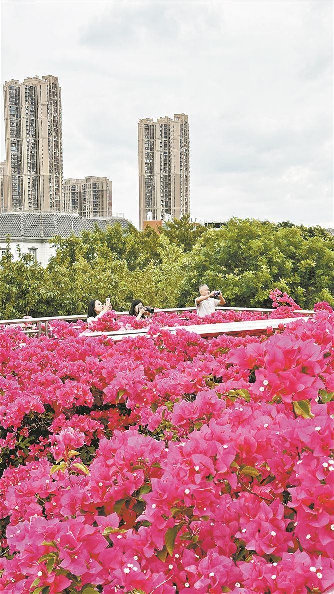 行走厦门 光影记录绚烂花海 厦门三角梅盛放,多处人行天桥成了“花的走廊”