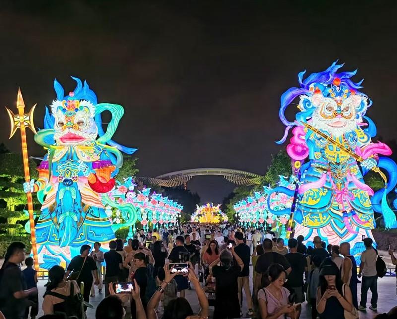 园博苑“光影秘境”大型等会人流如织。 10月1日,园博苑内花灯璀璨、人潮如织,为期8天的2025厦门园博苑国庆中秋嘉年华正式启幕,为市民游客献上一场“传统文化+现代科技+多元消费”的文旅盛宴。 作为嘉年华的“重头戏”,“光影秘境”夜游灯会沿西门至月光环核心动线铺开,110亩灯海中,“四海升平”“醒狮门神”等灯组融入闽南古厝屋脊、渔船渔网等地域元素,声光电技术与非遗灯彩技艺碰撞出独特韵味。“妈妈你看,狮子会眨眼!”南门入口处的互动灯组让小游客惊呼,身着汉服的游人穿梭灯影间,与“园在水上、水在园中”的生态景观相映成趣。河北游客黄先生坦言:“南方花灯的柔美与人文风情,让人印象深刻。” 灯影之外,园博大道沿线的近百个市集摊位同样人气爆棚。沙茶面、土笋冻、吹糖人……传统与潮流在此碰撞,每个摊位既是消费点,也是“网红打卡位”。“我们特意设计了集装箱风、原木风的摊位,让‘逛吃’变成一种体验。”市集运营方介绍。更让游客直呼“有趣”的是“文旅赢票”机制——参与灯谜竞猜、博饼互动,可兑换旗下酒店折扣、科技馆门票或文创代金券,成功将客流导向餐饮、住宿、文创等多元业态。 除了视觉与味觉的享受,嘉年华更以文化为魂,让国庆假期“有滋有味”。10月1日晚,厦门小白鹭民间舞艺术中心、厦门歌舞剧院带来“我爱你中国”主题演出,歌舞、朗诵齐上阵,共抒爱国情怀;10月2日至7日,闽南语金曲展演、“街艺万相”街头快闪、“鹭岛艺阵”民俗表演轮番登场,更有“戏曲进校园”成果展演,让年轻演员与传统剧种同台,传递薪火。(记者 帅浩 来源:集美报) |