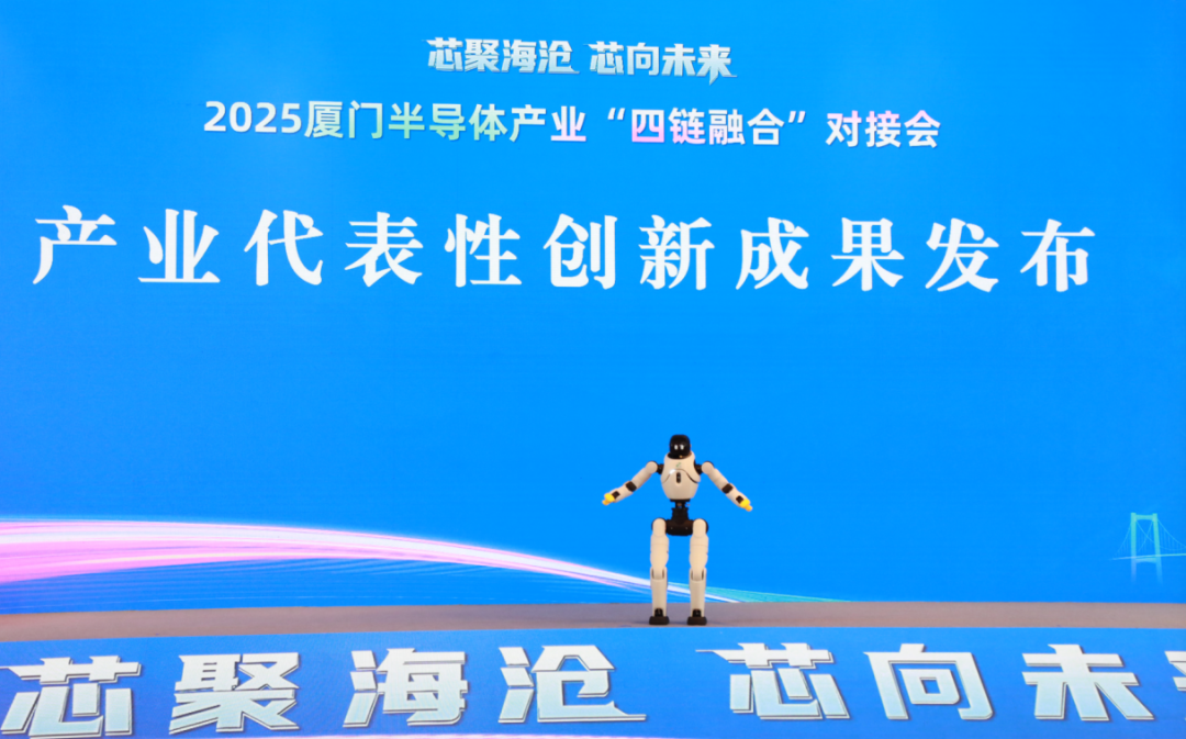 在主会场活动中,一场别开生面的“产业代表性创新成果发布”环节成为焦点。大会创新性地采用智元小鹭机器人进行发布,集中展示了厦门半导体企业的7项前沿创新成果。