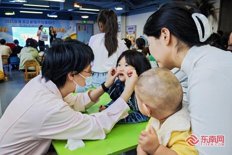 集美区托育体验日第四场,图为热场舞蹈(东南网记者 李霖 摄) 东南网11月17日讯(本网记者 李霖)为持续推进普惠托育体系建设,增进广大家庭对优质托育服务的了解与信任,厦门市集美区卫健局、集美区计生协于10月联合启动2025年集美区托育体验日活动。11月15日上午,活动第四站走进厦门海宝托育中心,本站活动规模进一步升级,吸引了近50组0—3岁婴幼儿家庭热情参与。 当天上午9点,萌娃们在家长的陪伴下陆续签到,一段充满欢笑的托育体验之旅就此开启。活动伊始,一场奇妙的科学实验秀率先吸引了所有人的目光,大家在老师的引导下解锁神奇的科学密码。随后,孩子们随着欢快的节奏活力舞动,将欢乐氛围推向高潮。 主题游园会环节设计别出心裁,包含“贪吃大作战”“虫虫套圈圈”“筷子夹蔬菜”“波点秀场”以及“探秘鲸探海洋科普馆”五大主题区域。孩子们在亲子协作中闯关夺宝,在游戏中锻炼手眼协调能力,在海洋科普馆中探索深海奥秘,全方位体验了托育机构的专业课程与活动安排。活动现场设置了三轮抽奖环节,不少家庭还获得了由机构发放的“托育体验券”,可在后续实际入托时进行兑换。 集美区妇幼保健院儿保科主治医师吴纯怡也来到现场,为家长们提供义诊和健康咨询服务。她特别强调了0—6岁儿童眼部发育关键期的重要性,建议婴幼儿家庭要保证充足的户外活动时间,帮助幼儿养成良好的用眼习惯。 据悉,本次活动既是集美区托育体验日系列活动的第四站,也标志着海宝托育中心正式开园。该中心专注于0—3岁婴幼儿的潜能开发与早托一体化服务,秉持“保教结合”理念,致力于通过专业活动和游戏,促进婴幼儿多元智能发展。“‘海宝’这个名字,寄托着我们对孩子的美好祝愿——愿他们像大海一样包容、像宝贝一样珍贵。”厦门海宝托育中心负责人卢雯智介绍道。 值得一提的是,海宝托育中心是集美区第二家由用人单位直接参与办托的托育机构,充分利用用人单位自身场地、设施和人力资源优势,有效扩大普惠托育服务供给,以“小托育”服务“托”起职工及周边居民的“大幸福”,为集美区用人单位办托模式再添新样本。 据集美区卫生健康局相关负责人介绍,为持续增进广大家庭对优质托育服务的认知与信任,营造全社会关心支持婴幼儿照护与家庭育儿的良好氛围,集美区精心遴选辖区6家高品质普惠托育机构,策划组织了此次为期一个多月的托育体验日系列活动。活动将持续至本月底,第五站、第六站将分别走进茗宝托育园、安米拉托育中心,为更多适龄婴幼儿家庭提供沉浸式的免费托育体验。