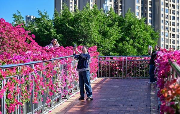 “三角梅花廊”成了最艳丽的拍照背景。 |