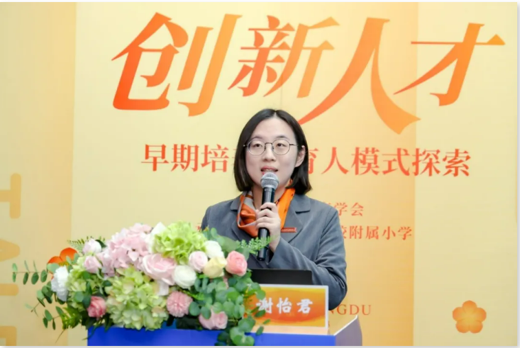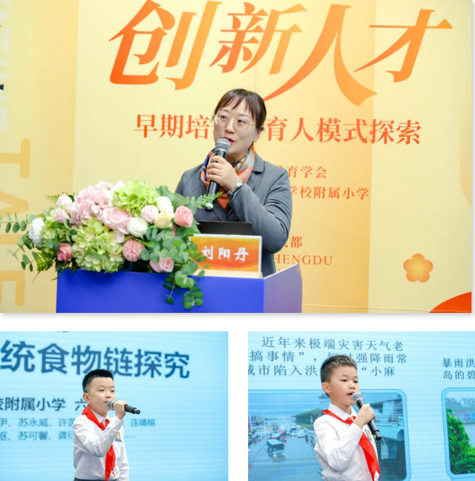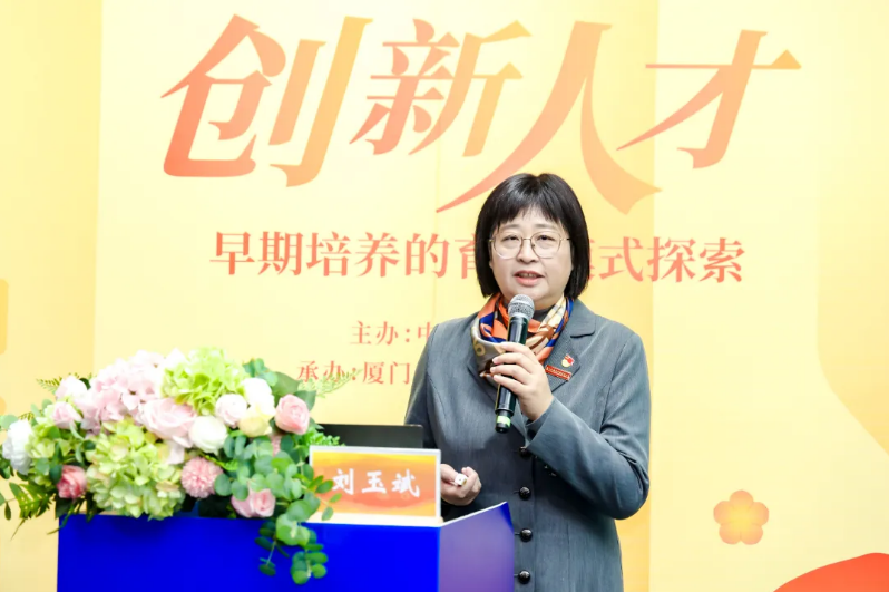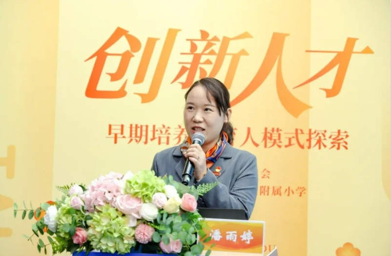 厦门外国语学校附属小学书记刘玉斌以《“少年科学院”模式下创新人才早期培养探索》为题,从理论奠基、模式建构、实践成效三方面,分享了学校三十年来以“少年科学院”为枢纽的育人体系。