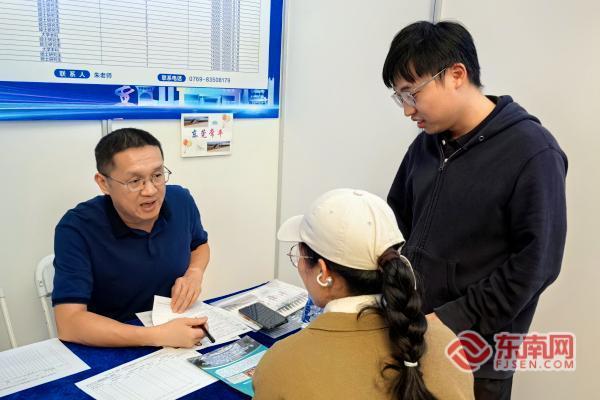 求职者咨询岗位需求(东南网记者 刘玮 摄) 活动现场精心规划了企业招聘区、求职助力区、政策咨询区、韶关风物展示区等功能区,为求职者带来高效、便捷且充满趣味的参会体验。在企业招聘区,各展位巧融“绿色产业+人文生态”双元素,直观呈现韶关“生态优先、产城融合”的发展路径。此外,政策咨询区提供政策解读、简历优化、职业测评等服务,重点宣讲来韶工作的人才待遇、人才服务等政策。