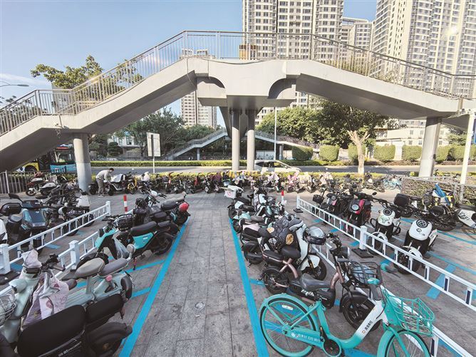 从杂乱拥堵到清爽通畅 增设非机动车停车位,蔡塘爱琴海广场停车秩序改善