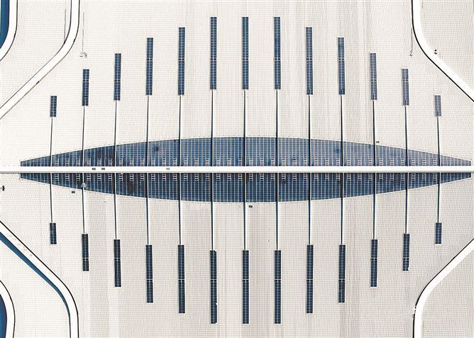指廊 厦门翔安国际机场致力于打造零碳机场,航站楼六条指廊(呈手指状放射延伸的结构)屋面安装总面积达5.6万平方米的分布式光伏发电系统,采用防眩光玻璃降低对飞机起降的干扰,预计年发电量1300万千瓦时。