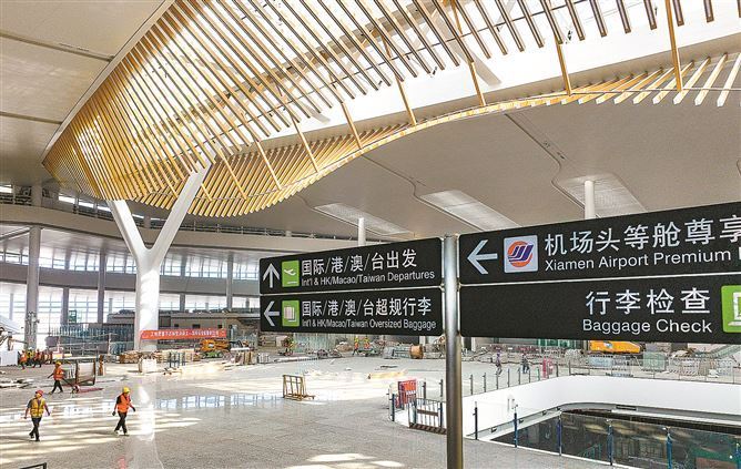 出发大厅 出发大厅已进入最后装修阶段。一些指示牌、LED显示屏等已安装到位。 该机场计划2026年3月满足校飞条件,2026年底通航 机场主体工程总体形象完成约98% 主体工程下月底基本建成 北一、南一双跑道已贯通 航站楼精装修基本完成 厦门日报讯(文/记者 蔡绵绵 图/记者 王火炎)11月28日,微信公众号“厦门日报视觉”发布厦门翔安国际机场高清全景图,这座即将展翅飞翔的航空枢纽首次完整展露“真颜”,引发网络热议,网友纷纷留言点赞“厦门新地标”,“期待通航时刻”。 全景图中,55万平方米的航站楼以“大厝”三重檐叠落造型惊艳亮相,“出砖入石燕尾脊”等闽南元素与11.8万平方米金属屋盖相映成趣,北一、南一双跑道如双翼舒展,3800米长的4F级北一跑道可起降全球最大客机,各个通航必备项目一览无余,尽显宏大气势。 这组高清画面被网友“徐先生”盛赞“每一帧都能当壁纸”。网友Yunnsl直呼:“从空中俯瞰太震撼了,闽南风情与国际范儿完美融合,这就是厦门的新客厅!” 当前,厦门翔安国际机场主体工程已经进入收官冲刺阶段,下个月底将基本建成。机场主体工程总体形象进度累计完成约98%,航站楼精装修基本完成,飞行区北一、南一双跑道已贯通。通航必要项目开启“加速”模式:空管工程塔台工作区及业务区已完成主体结构验收,整体已完成78%;供油工程油库及航空加油站民航专业工程累计完成75%;厦航基地工程3个子项工程平均累计完成68%,商舟货站累计完成83%;山航基地工程2个子项工程已完成桩基工程,正在开展主体结构及钢结构施工;东航基地一期地服机务保障区项目已于10月底开始进场实施;太古翔安新机场维修基地已竣工验收。 作为国家“十四五”重大交通枢纽工程,厦门翔安国际机场计划2026年3月满足校飞(飞行校验)条件,2026年底通航。建成通航后,可满足年旅客吞吐量4500万人次、年飞机起降38万架次的使用要求。 |