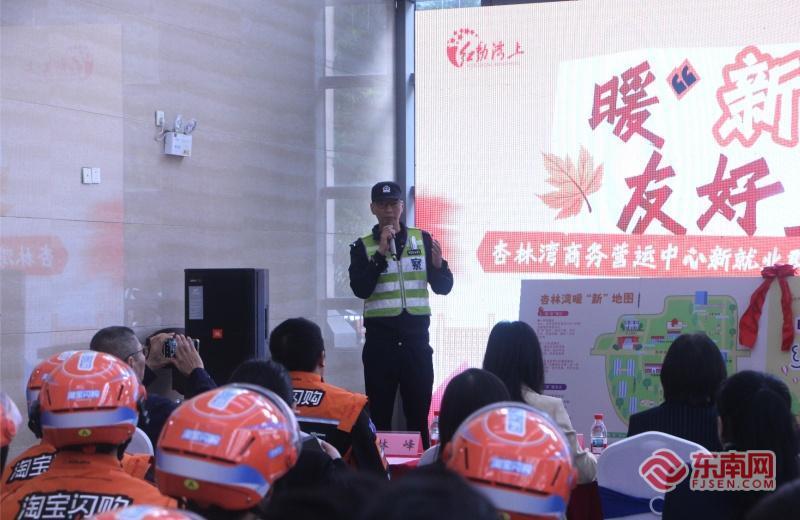 《暖“新”湾区资源手册》发布(东南网记者 李霖 摄) 多措并举 助力融入湾区生活 为了让新就业群体在园区工作更便捷、生活更温暖,杏林湾商务营运中心党委正式发布《暖“新”湾区资源手册》。该手册集纳了园区内便捷的“补给站”(如各楼宇服务点)、温暖的“合作圈”(如合作商户优惠)以及成长的“加油站”(如党群服务中心活动)三大核心资源,堪称助力新就业群体“融入友好”的一部“生活宝典”。领导与企业代表共同启动了手册发布仪式,并现场向淘宝闪购、京东等平台的骑手代表赠送了手册和暖心礼包。 据悉,此次启动的“友好场景”建设是一个系统性工程。除上述内容外,未来还将持续推进“权益友好”场景,通过楼宇大堂定期设点提供政策、法律咨询服务;打造“通行友好”场景,联合交警部门开展交通安全宣传互动等,促进新就业群体与园区社区的深度互动与融合。 活动现场邀请集美交警大队杏林中队警官宣讲交通安全知识,还为新就业群体准备了暖“新”共融·互动成长市集,吸引外卖员和快递员深度参与、轻松体验,在寓教于乐中提升安全意识,增强归属感。 “新就业群体是服务企业、连接供需的关键纽带,是保障楼宇高效运转的重要力量。”杏林湾商务营运中心党委书记、集美区财政局副局长陈银华说,服务好新就业群体,为他们创造更多便利与温暖,就是为整个园区注入更多动能与活力。 陈银华表示,“友好直达”场景建设,正是践行这一理念的务实举措,希望通过“设施友好、关爱友好、融入友好、权益友好、通行友好”的立体化场景,切实回应新就业群体的现实需求,让其在湾区的奋斗之路更加顺畅、更加温暖。