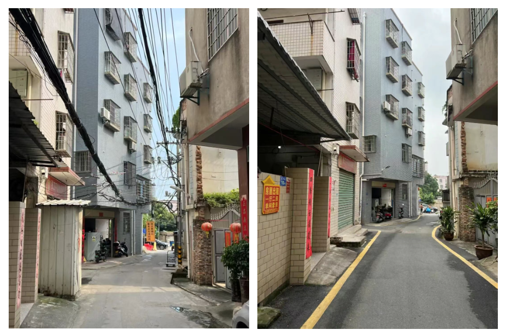 整治前 整治后 “以前这条路上违建多、电线乱,开车、会车都难;现在路宽了,还有不少停车位。”站在尾厝社改造后的主干道上,居民老林看着眼前的变化,语气里满是自豪。 铁山社区的空间蝶变,始于一场“刀刃向内”的环境整治。社区党委创新“三红工作法”,划分6个红色责任区,由党委书记挂帅攻坚,党员干部通过“夜访行动 + 一户一策”逐户走访 420 户次,收集群众关于“增加停车位”“拓展活动空间”等诉求38个,切实尊重民意。老党员老林主动拆除自家房屋拓宽村道视野,退休老书记带头签署点状征收协议……在党员示范带动下,居民自发清理房前屋后杂物40余处,累计拆违32处、腾出空间5794平方米。 |