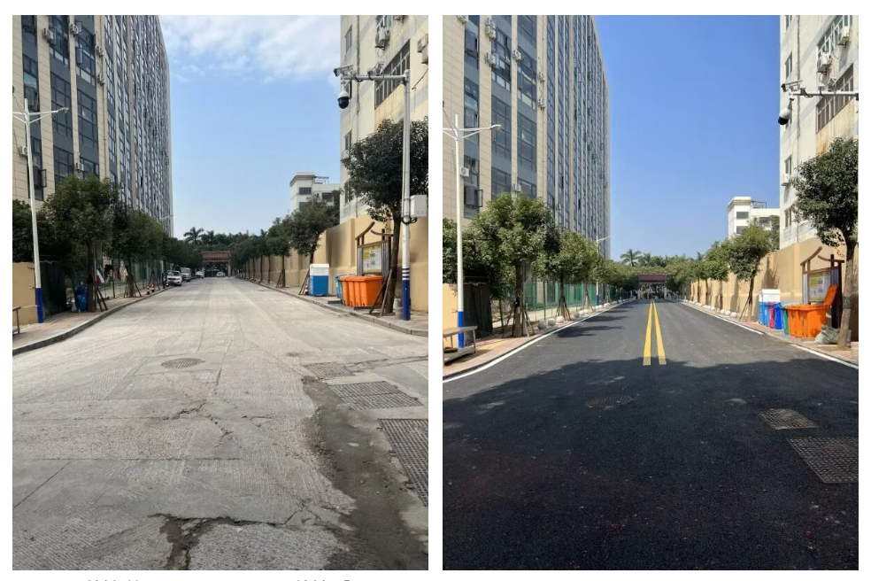 整治前 整治后 “我们不搞‘一刀切’的拆迁,而是用‘留、改、拆’组合拳释放存量空间。”铁山社区党委书记、居委会主任介绍,社区重点保留古厝、老树等历史肌理,改造强弱电、道路、外立面等基础设施,拆除影响安全与美观的违建。 不仅如此,社区还积极发动居民产业共建,村民自发改造雨棚、立面和不规范店招,形成了统一中见个性的标志性街道。其中,炮仗花装点的“尾厝”字样店铺,已成为社区新标识。截至目前,尾厝社完成道路“白改黑”9667平方米,2520米缆线下地解决“空中蜘蛛网”问题,新增64盏路灯点亮夜间出行路;户外休闲空间从5534.6平方米扩展到22138.68平方米,占比从5.95%跃升至23.81%,180个新增停车位缓解了“停车难”。