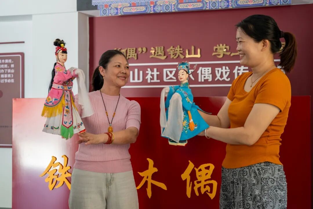 “一口道尽千古事,双手舞动百万兵。”周末傍晚的铁山社区木偶戏传习点,非遗代表性传承人邱玉治正手把手教小朋友操控木偶,《月唐演绎》中孝廉主题的剧情,引得台下观众阵阵掌声。 铁山社区的木偶戏传承始于清末,曾是逢年过节必不可少的文化节目。在城中村现代化治理中,社区党委深入挖掘这一文化基因,将古厝改造为木偶戏传习点。 文化传承不止于“非遗活化”,更在于“精神滋养”。社区将老石头房改造为综治中心与村史室综合体,以图文并茂的形式呈现铁山的历史记忆、民俗文化以及党建成效,成为社区文化窗口;在带状公园打造廉政景观体系,在百米长艺术墙上手绘着经典故事,孝廉文化知识互动装置、小品雕塑点缀其间,还有木偶装置打卡点,让公园既是休闲区,更是文化传承的舞台。