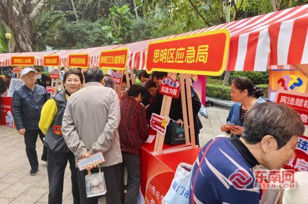 法治游园会吸引众多市民参与(东南网记者 刘玮 摄) 与此同时,集趣味性与实用性于一体的法治游园会吸引了众多市民参与。“宪法知识盲盒”“法治套圈圈”“普法大转盘”等互动游戏,将宪法知识融入趣味挑战,市民通过打卡游戏、集齐印章赢取礼品,在轻松氛围中学习法律知识。15家协办单位现场设立“普法小摊”,“蒲公英”普法志愿者发放宣传资料、解答法律咨询,将法律条文转化为生活“法宝”。市民张女士感慨:“像是在逛游园会,法律知识不知不觉就记住了!” 活动现场还同步启幕“全民普法40年回眸”展,通过“法治时光轮”等形式再现普法传播媒介的时代演进。该展览后续将移至海丝中央法务区思明示范区持续展出,进一步扩大宣传覆盖面。