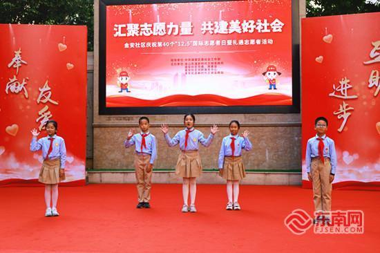 金安小学知育少年宣讲团带来《“橙”载阳光 温暖心田》(金安社区供图) 东南网12月4日讯(本网记者 夏菁 通讯员 徐姣)在第40个“12・5”国际志愿者日来临之际,厦门市湖里区金安社区洋溢着感恩与致敬的浓厚氛围。12月3日,以“汇聚志愿力量 共建美好社会”为主题的国际志愿者日暨礼遇志愿者活动成功举办,湖里区、金山街道领导与社区干部、近邻友好单位代表及百余位志愿者齐聚一堂,共庆节日、共话奉献。 活动伊始,金安社区党委书记、居委会主任陈惠萍发表致辞,她高度肯定了志愿者们不计回报、默默耕耘的奉献精神,回顾了志愿者们在关爱老人、守护环境、传承文化等社区建设各领域的突出贡献,并对社区志愿服务的未来发展寄予殷切期许,让在场志愿者倍感温暖与鼓舞。 文艺演出与表彰仪式交替进行,精彩纷呈。手工志愿服务队带来的时尚帽子秀,用巧手编织的创意作品展现了志愿生活的灵动风采;文明督导志愿服务队唱响《大中国》,激昂旋律中传递出家国情怀与文明担当;金安小学知育少年宣讲团的《“橙” 载阳光,温暖心田》,以童真诠释志愿精神的代代传承;文化志愿服务队的舞蹈《绿水青山》,用优美舞姿传递环保理念,赢得阵阵掌声。