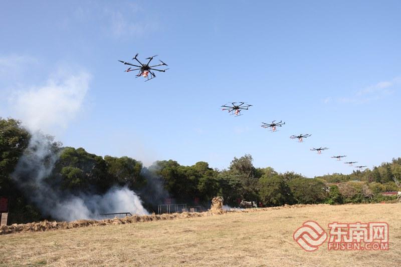 8台无人机组成“空中灭火编队” 东南网记者 李奇 摄 |