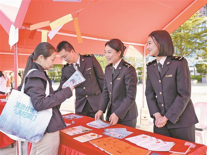 厦门海关工作人员为市民科普生物安全相关知识。