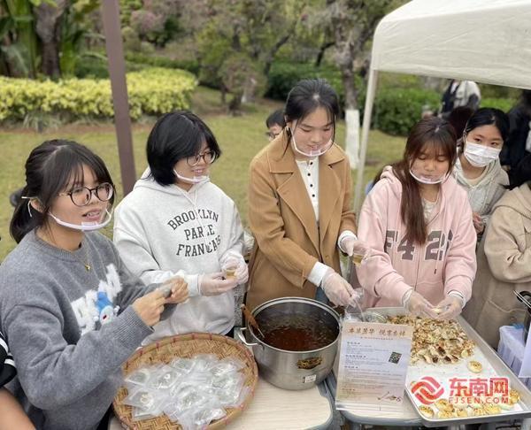 不同主题的摊位各展魅力 东南网记者 刘学佳 摄 东南网12月26日讯(本网记者 刘学佳)中药文创趣味十足,药膳品鉴香气四溢……12月25日,“本草芳华 悦享杏林”厦门医学院首届中医药文化节欢乐开启,为师生们带来了一场别开生面的中医药文化体验之旅。 厦门医学院药学院党委副书记周佳娴在致辞中表示:“首届中医药文化节内容丰富,师生们可近距离感受中医药文化的深厚底蕴。希望以此为契机,让岐黄文化在校园代代相传,让中华优秀传统文化在新时代绽放更绚丽的光彩。” 随后,一场刚柔并济的八段锦表演率先登场,正式拉开本次活动的序幕。现场亮点纷呈,不同主题的展区各具特色——成人推拿区备受青睐,体验者络绎不绝;国学科普与临床中医展示区通过图文并茂的展板和互动问答,将深奥的中医药理论以通俗易懂的方式呈现;互动游戏区设置的“鉴识药图”等趣味环节,让参与者轻松学习中医药知识;养生茶饮体验区的冬季养生茶暖意融融;百草园劳动实践成果品鉴区的各式药膳香气扑鼻,很快成了师生们眼中的“香饽饽”。