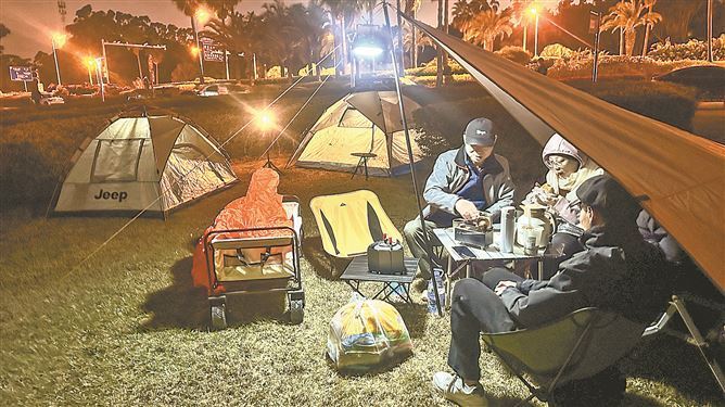 环东浪漫线,市民游客有序露营跨年。(记者 林铭鸿摄)