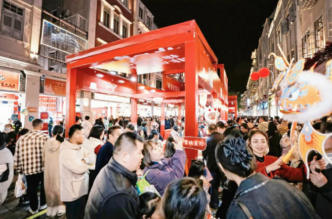 同步开启的“中山路迎新市集” “邂逅南洋·共拾新光”打卡体验活动 为市民游客打造 集逛、吃、玩、购、摄、演、学于一体的 南洋风情消费场景 老街嗨购,中山路为迎接厦门新年消费热潮再添一把火。元旦假期,中山路商圈开启“跨年不打烊”活动,推出年终折扣特惠、票根联动兑换等优惠活动。市售时间的延长进一步释放消费潜力,票根联动将“吃住行游购娱”全链条消费串联,激活商圈循环消费。 街区内市场,一派热气腾腾。从百年老字号到时尚新品牌,多元业态全面发力。餐饮、零售、住宿市场火热。黄则和花生汤、叶氏麻糍等老字号全天火爆;中山路周边酒店民宿大多客满,不少游客选择“夜间逛吃+住宿停留”的深度体验模式,文旅融合消费场景持续升温。