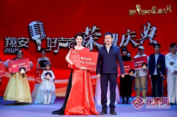 总决赛总冠军获得者领奖(主办方供图) 东南网1月5日讯(本网记者 刘玮 通讯员 刘瑞菡)1月1日下午,作为厦门市文艺发展专项资金资助项目,2025年翔安好声音歌手赛总决赛——“荣耀之战”在翔安区文化馆剧场圆满落幕。赛事由厦门市文化和旅游局、翔安区人民政府指导,中共翔安区委宣传部支持,翔安区文化和旅游局主办,翔安区文化馆承办,现场气氛热烈、座无虚席。 本届赛事在全国范围内掀起了群众性音乐文化活动的热潮。总决赛在全体选手共同演绎的主题曲《畅翔厦金湾》中拉开序幕。比赛分为“帮唱环节”与“初心不忘”两轮竞演,既展现了音乐合作与传承的力量,也体现了选手在艺术道路上的成长与突破。