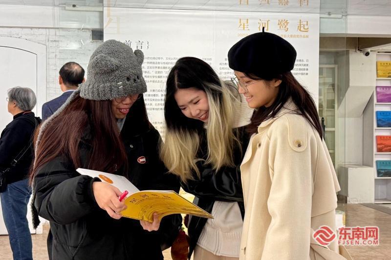 观众们一起观看获奖作品集(东南网记者 李霖 摄) 光影为桥 汇集两岸青春力量 集美·两岸大学生摄影大赛自2021年创设以来,已连续举办五届,发展为两岸青年文化交流领域的品牌赛事。本届活动由福建省传播学会、华侨大学、澳门科技大学、厦门市集美区文学艺术界联合会、厦门市摄影家协会主办,华侨大学新闻与传播学院、澳门科技大学人文艺术学院、厦门市集美区摄影家协会承办。 “摄影是最直观、最真切的语言,能让两岸同胞彼此‘看见’ 鲜活生活、‘听懂’赤诚心声。”中国摄影家协会理事,厦门市文联副主席、市摄影家协会主席杨景初认为,厦门是两岸交流最便捷的桥头堡,青年学子是两岸未来,“把影展持续办出特色,就是为两岸情谊加温”。 “从影像对话起步,抵达心灵共鸣。历经五年培育,两岸大学生摄影大赛已成长为联结两岸青年情感、推动文化交流的重要平台。”集美区委宣传部相关负责人强调,未来将持续深耕集美·两岸大学生摄影大赛这一“金色名片”,进一步扩大品牌影响力,吸引更多两岸及海外青年创作者参与,鼓励他们用镜头书写时代、定格生活,以青春视角记录社会变迁与人民故事,为两岸人文交流与心灵契合持续注入澎湃的青春力量。 “大赛积极呼应‘两岸命运共同体’的理念,历经五年的蝶变,已成长为两岸青年影像对话、互动互鉴的优质平台。”华侨大学新闻与传播学院党委书记李永松表示,两岸青年正借助影像这一世界性语言,讲述两岸共通的中国故事,让可亲、可敬、可信的中国形象,在一帧帧光影里鲜活传递。 除了此次作品展,主办方还编辑出版了获奖作品集,全面展示两岸学子以影像促交流、以文化促融合的丰硕成果,为两岸融合发展注入持久而温暖的青春力量。