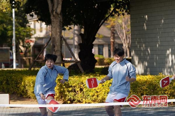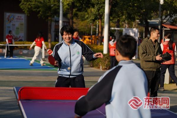 居民在打乒乓球。(东南网记者 邹玒 摄) 东南网1月10日讯(本网记者 邹玒 文洁 李奇)节令鼓铿锵、彩带龙灵动、宋江阵威武…… 1月8日下午,一场融合传统民俗与现代健身的群众体育文化展示交流活动,在厦门市同安区东海社区火热上演。 作为2026年同安区市民文明行为示范月暨新时代文明实践集中示范主题活动的核心环节,这场活动不仅是同安“文明实践+体育运动”融合模式的生动呈现,更折射出该区以体育为纽带、以文明为内核,推动基层治理提质增效、赋能民生幸福的深度探索。 近年来,同安区始终将新时代文明实践建设与民生需求紧密对接,以“贴近群众、激发参与”为导向,将体育文化作为重要载体,构建起覆盖城乡、层次分明、特色鲜明的文明实践体系。从环东半程马拉松、铁人三项公开赛等大型赛事到社区亲子跑、长者趣味运动会等基层活动,同安让体育活力渗透到城市肌理,让文明风尚融入日常生活,形成了“全民参与、全民共享”的良好局面。