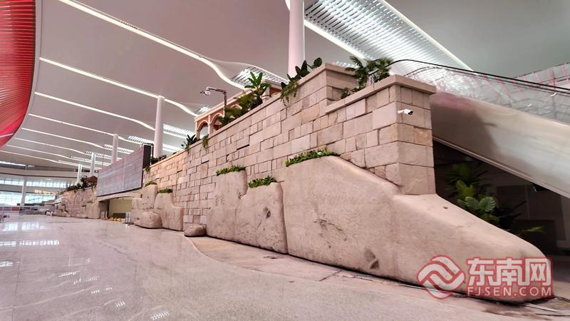 厦门翔安国际机场航站楼码头墙 东南网记者 李奇 摄 |