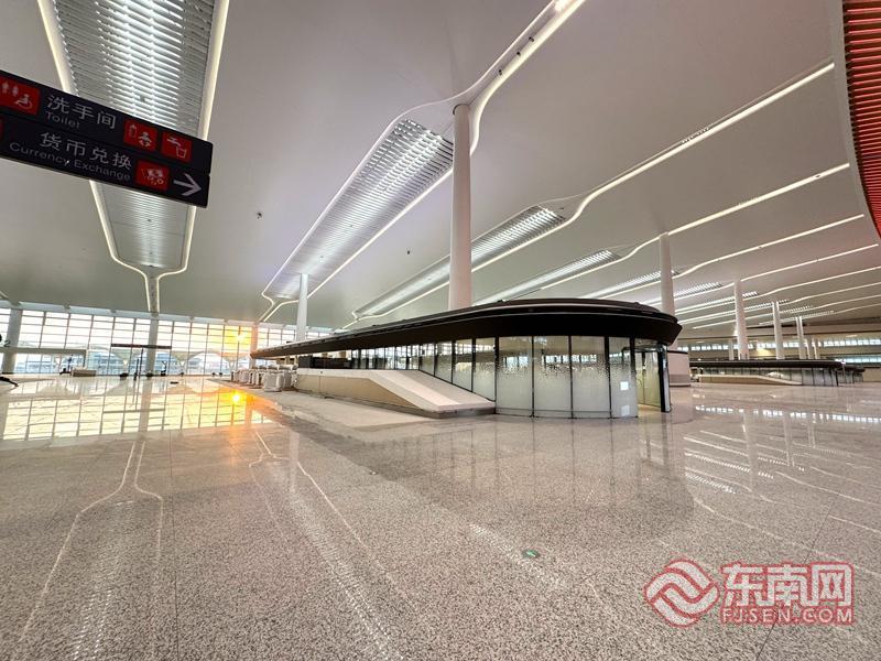 厦门翔安国际机场航站楼出发层大厅 东南网记者 李奇 摄 东南网1月21日讯(本网记者 李奇)近日,厦门翔安国际机场航站楼精装修工程已完工,55万平方米的航站楼融入闽南大厝元素,双坡三重檐屋顶尽显地域特色,内部功能区域划分清晰,为后续运营奠定基础。