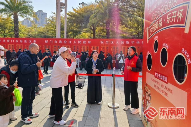 市民们排队体验“沙包掷福·乐开怀”(东南网记者 刘玮 摄) 与此同时,“平安海沧”“文明海沧”“情暖海沧”等专题展位依次排开,全方位展示海沧区近年来在社会治理、文化建设、民生保障等方面的亮眼成绩,既展现了新时代海沧的蓬勃发展活力,也为台胞台企扎根发展提供了坚实支撑,彰显两岸融合发展带来的民生福祉。 据悉,1月26日起,书法家们将深入海沧各街道、海沧湖公园及SM厦门海沧城市广场等地,开展下基层书春送福活动,把新春祝福与文化温暖送进基层、送到群众身边,持续丰富市民文化生活,让两岸文化交流的暖意延伸到更多角落。 本次活动由厦门市文联指导,海沧区委宣传部、海沧区新时代文明实践中心办公室主办,海沧区文联承办,海沧区委社会工作部、海沧区委台办支持,厦门市书法家协会、海沧区政协书画院、海沧区书法家协会、海沧区摄影家协会协办。活动以文化为纽带、以新春为契机,进一步夯实了两岸同胞的情感根基,擦亮了海沧对台文化交流品牌,为深化两岸民间交流、促进两岸融合发展增添了温暖动能。 |