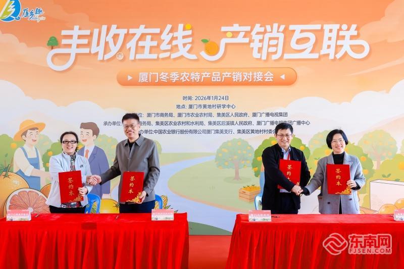 四方联合单位共同签署合作意向书(主办方供图) 东南网1月24日讯(本网记者 李霖 通讯员 游曼莉)1月24日上午,在厦门市集美区黄地村的脐橙果园旁,一场别开生面的“田间地头”产销对接会热烈举行。由厦门市商务局、农业农村局、集美区人民政府与厦门广播电视集团联合发起的“厦乡趣”农特产品产销对接机制在活动中正式启动,标志着厦门市以“政府搭台、平台运营、市场运作”为核心的助农新格局迈出关键一步。 四方联动 搭建产销“快车道” 启动仪式上,四方联合单位共同签署合作意向书,整合政府资源、媒体力量和平台优势,依托“厦乡趣”小程序“乡村帮帮团”模块,系统化解决农特产品产销信息不畅、流通环节多等难题,为本地优质农特产品构建稳定、高效的对接平台。 厦门市商务局相关负责人表示,此次机制的启动,是厦门市落实乡村振兴战略、促进农村消费的重要举措。“我们将通过政策引导、市场培育和平台赋能,推动更多‘厦字号’农特产品走出田间、走向全国市场。” 产销直通 乡村带头人现场“打CALL” 对接会创新将会场设在田间。集美黄地脐橙、同安进士芋、翔安东寮豆干等特色产品现场展销品鉴。采购商代表在展位前直接观色、闻香、品尝,部分代表还深入脐橙果园实地考察,亲眼见证种植环境与技术,实现了从“看样品”到“看源头”的深度对接。 黄地、褒美、东寮等村的书记或产品代表轮流登台,用质朴语言讲述产品故事,为家乡特产倾情代言。这一形式既展现了新时代乡村干部的风采,也以真诚赢得了市场关注。 成果落地 助力“产供销”高效衔接 此次对接会“产供销”成果颇丰——自联动机制筹备以来,4家联动单位合力推动黄地脐橙意向采购36600斤。对接会现场达成意向采购:莲花柠檬鲜果5000斤、许庄沃柑1000斤、东寮豆干400斤。此外,现场共结成产销意向对子51对,“厦乡趣”平台将持续关注各联动单位的成交进展和数据。 据悉,作为数字化助农新引擎,“厦乡趣”平台将持续提供品控溯源、数据反馈等全链条服务,通过常态化产销联动与市场数据分析,推动本地农业走向品牌化、市场化,打造厦门农产品的区域公用品牌。 |