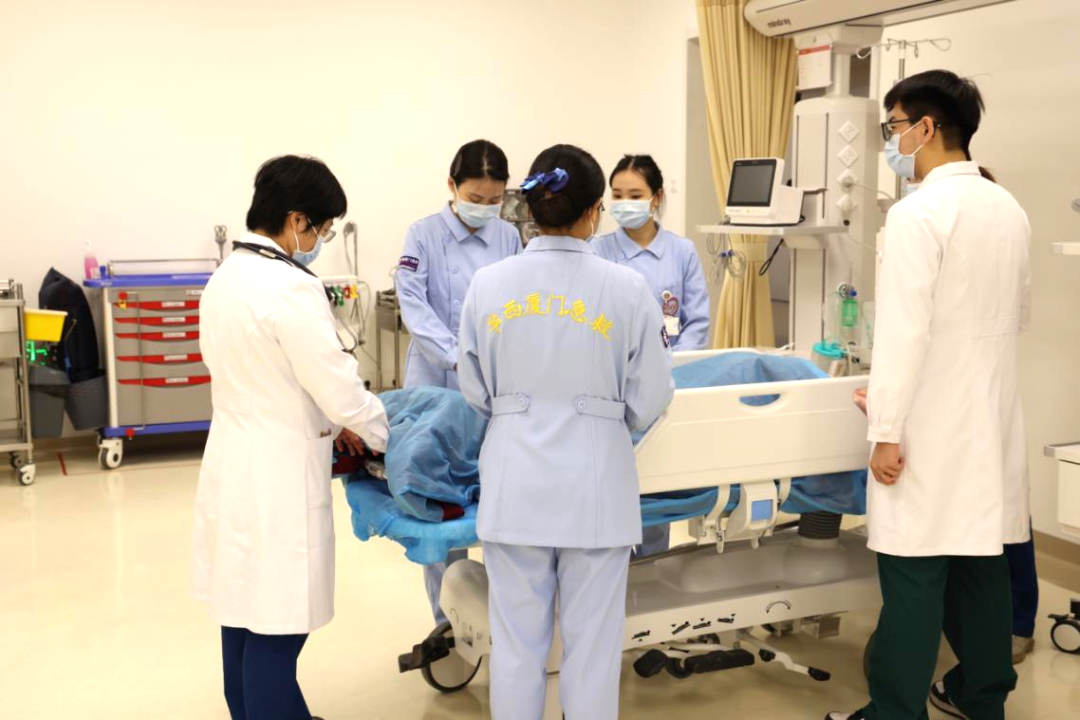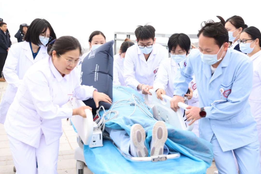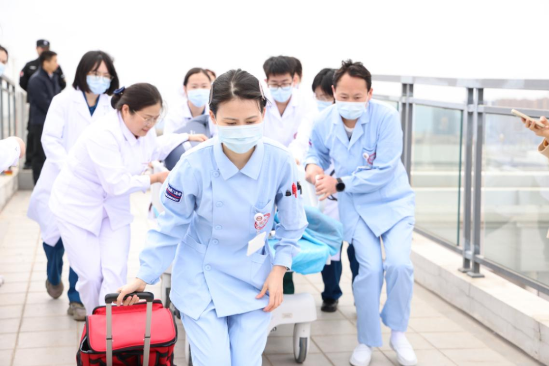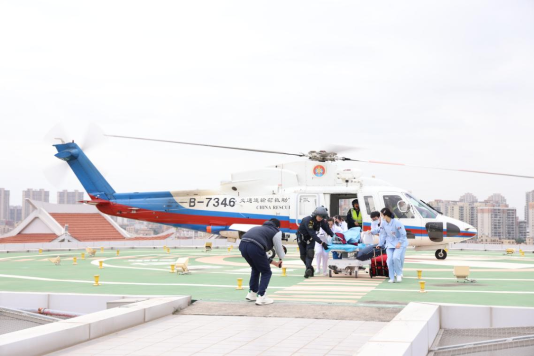演练现场 当高速公路上的危重患者生命垂危,“黄金一小时”如何实现?航空医疗救援就是那条关键的“空中生命线”——它能跨越地形、突破拥堵,将远距离转运时间缩短数倍,为心梗、重伤等急症患者抢回生机,真正实现“用速度挽救生命”。 近日,在厦门市应急管理局、厦门市消防救援局的牵头主办下,四川大学华西厦门医院与东海第二救助飞行队联合开展了一场高仿真、全流程的危重车祸伤患者航空转运及急诊救治应急演练。本次演练细化并规范了直升机转运患者接收流程,强化医护、后勤协同配合能力,提升危重患者从停机坪到抢救室、手术室的快速处置、转运及交接效率,确保应急状态下各环节衔接顺畅,保障患者生命安全。 全要素实战,构筑无缝衔接的生命通道 演练模拟一名25岁女性在高速遭遇严重车祸,意识模糊伴多处损伤,病情危重。现场启动航空救援,直升机呼啸而至。与此同时,我院急诊科已同步收到预警信息,启动救援程序。 在我院停机坪,急诊科医护人员及后勤保障组严阵以待。直升机平稳降落后,舱门一开,地面医护团队立即上前,与机组人员高效交接病情、生命体征及已实施的急救措施。患者被平稳转移至急救转运床,在严密监护下,经由专用电梯快速转运至急诊抢救室。 抢救室内,一切已准备就绪。患者抵达后,立即转入抢救床。急诊医生快速查体、下达医嘱。护士团队默契配合,执行迅速。急诊科主任现场指挥,并完成床旁重点超声评估(FAST)。
