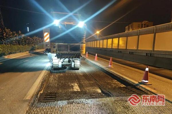 集美公路部门夜间修复病害路面 保障道路安全畅通