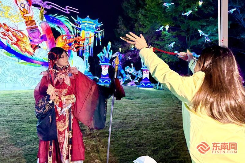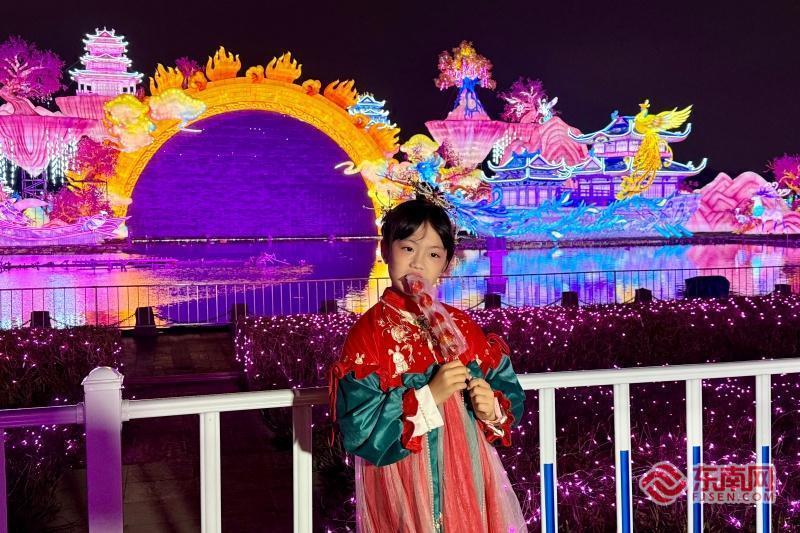 游客身着华服游览灯会(东南网记者 李霖 摄)