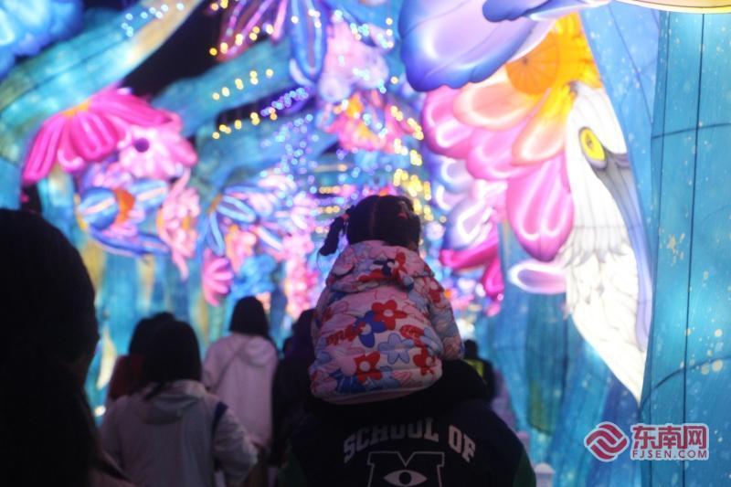 游客漫步流光溢彩中(东南网记者 李霖 摄)