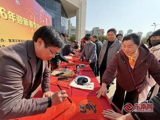 活动现场(集美区文化馆供图) 东南网2月4日讯(本网记者 刘学佳)2月3日上午,“我们的中国梦 文化进万家”集美区“强基工程”2026年迎新春文化惠民活动在杏林文体中心广场拉开帷幕,为即将到来的新春佳节增添了浓厚氛围。 活动现场,来自集美区的书法名家齐聚一堂,铺纸研墨、笔走龙蛇,“吉祥如意万事顺,平安富贵全家福”“春满人间百花艳,福临小院四季安”等一副副寓意吉祥的春联新鲜“出炉”,既有传统经典的延续,又不乏贴合时代特色的创新。现场群众络绎不绝,有序排队等候,脸上洋溢着期待与喜悦的笑容。 活动设置的图书赠送专区同样人气高涨。集美区少儿图书馆、集美区青少年宫精心挑选了一批优质图书,涵盖文化经典、现代文学佳作多个品类,适合不同年龄段读者的阅读需求。不少家长特意带着孩子前来,孩子们认真挑选,沉浸在书香之中。家长们则表示,这样的活动既能让孩子感受阅读的乐趣,又能近距离接触传统文化,非常有意义。“能把满载祝福的春联和优质图书带回家,这个春节过得更有文化味了!”一位年轻母亲笑着说道。 集美区文化体育事业服务发展中心相关负责人表示,“强基工程”文化惠民活动是该区推动公共文化服务下沉、助力乡村文化振兴的重要举措。活动通过“送文化”与“种文化”相结合的方式,既满足了群众的文化需求,也激发了基层文化活力,为区域高质量发展提供了文化支撑和精神动力。 此次惠民活动不仅为群众送去了新春祝福,更让传统文化以鲜活的方式走进百姓生活,成为连接文化传承与群众需求的重要桥梁。据悉,该项活动还将持续开展,将更多优质文化服务送到群众身边。 本次活动由集美区委宣传部、集美区文化和旅游局、集美区文学艺术界联合会共同主办,集美区文化体育事业服务发展中心、集美区书法家协会、集美区文化馆、集美区少儿图书馆、集美区青少年宫联合承办。 |