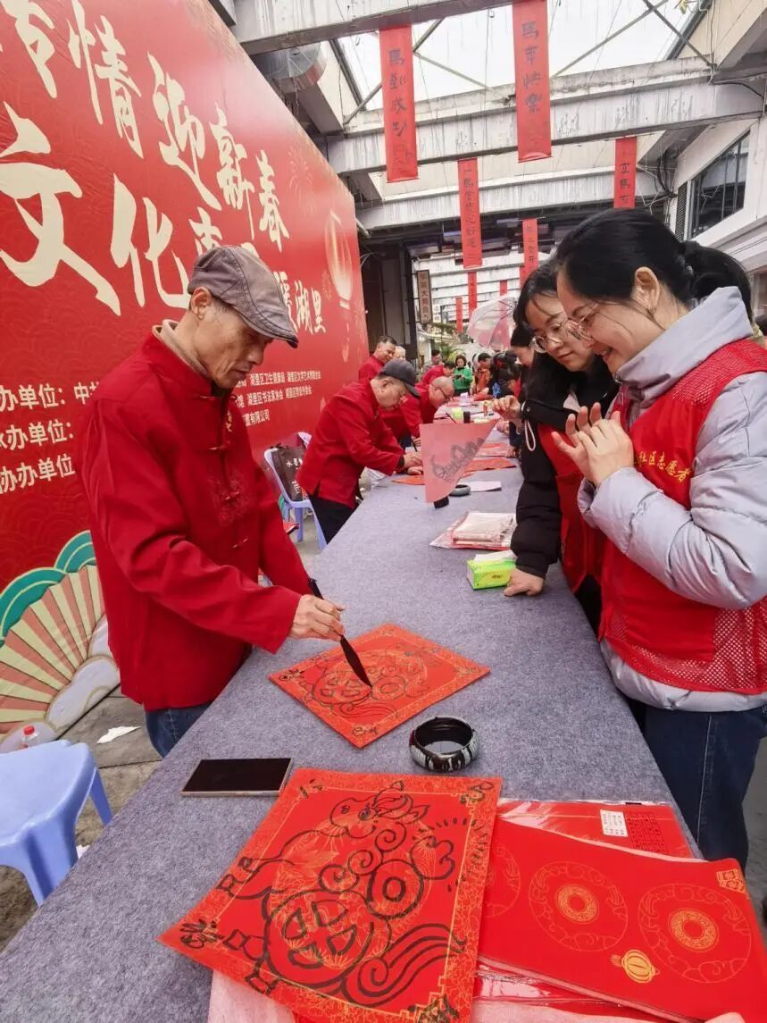 新春的脚步渐近 厦门湖里区的街头巷尾 早已浸润在浓浓的年味中 近期,为丰富居民精神文化生活、营造浓厚节日氛围,湖里区委宣传部联合区文旅局、区卫健局、区文联等多部门,开展“我们的中国梦·文化进万家”——2026年文化科技卫生“三下乡”惠民活动,深入辖区五个街道(社区),把文化盛宴、健康服务与新春祝福送到群众家门口,让优质文化资源扎根基层,切实提升群众的文化获得感、幸福感。 沉浸式文化体验 一起来感受 春联、剪纸与便民服务的“三重奏” 翰墨送福: 笔墨丹青书写万家祝福 在金山街道金安社区的活动现场,十几位书法家铺开红纸、挥毫泼墨,笔锋游走间,春联跃然纸上。 市民王阿姨捧着春联感慨:“手写的春联比印刷的更有年味,墨香里透着心意!” 据统计 五场活动累计书写并赠送 春联近万幅、“福”字8000余幅 连续四年,湖里区书法家协会会长庄德义带领近200名会员参与湖里区义务书写春联活动,他坦言:“每一年都能感受到社区居民对写春联活动的期待与喜爱,我们也希望能把最美好的祝愿送到社区、送到百姓家中,也送到大家心里。” 值得关注的是 此次活动有许多 “文化惠民班”的优秀学员 也加入写春联志愿者行列 实现从“学到”到“用到”的生动实践 现场还贴心设置了 “晒福区” 方便群众晾福晒福 剪纸非遗: 方寸之间传承千年文脉 如果说春联是春节的“文化名片”,剪纸则是湖里区为传统技艺注入的“创新基因”。在剪纸体验区,湖里区非遗剪纸代表性传承人汤美霞手持剪刀,一张张红纸瞬间化作灵动的生肖图案。市民们争相体验,将剪纸作品带回家。 “以前觉得剪纸离生活很远,今天和孩子一起动手,才发现传统手艺这么有趣!”市民张先生和孩子佩戴着亲手制作的剪纸徽章,笑称这是“最特别的春节礼物”。 据统计 五场活动吸引近1500人参与剪纸体验 发放千余张剪纸福字、徽章、冰箱贴等 汤美霞感慨:“大家热情参与,不仅让剪纸这项传统手艺得到鲜活传承,也为我们今后弘扬优秀传统文化注入了更多信心与活力。” 便民服务: 文化健康温暖群众心头 活动现场,针对老年群体需求,卫健部门组建医疗专家义务服务队,宣传卫生保健、疾病预防、饮食健康等知识,免费为居民一对一提供体检、诊疗服务,并给予专业指导和建议,让群众在家门口享受到优质的医疗服务。活动累计服务近千人次,发放健康手册2000余份。 区图书馆精心策划阅读推广志愿服务活动,通过设置咨询服务台、开展有奖灯谜竞猜等互动形式,吸引近千名市民热情参与,现场书香与新春喜庆交融,传统文化韵味浓厚,老少同乐间传递阅读之美。 让文化之光点亮千家万户 当最后一副春联在徐厝社区华美空间赠出,为这场文化盛宴画上句点。但湖里区的探索远未结束,文化惠民从“节日活动”升级为“日常滋养”。 大家盼的不只是春联福字,更是这份实实在在的关怀。在新时代的征程上,湖里区正以文化为笔,绘就一幅更具温度、更富活力的现代化城区画卷。 |