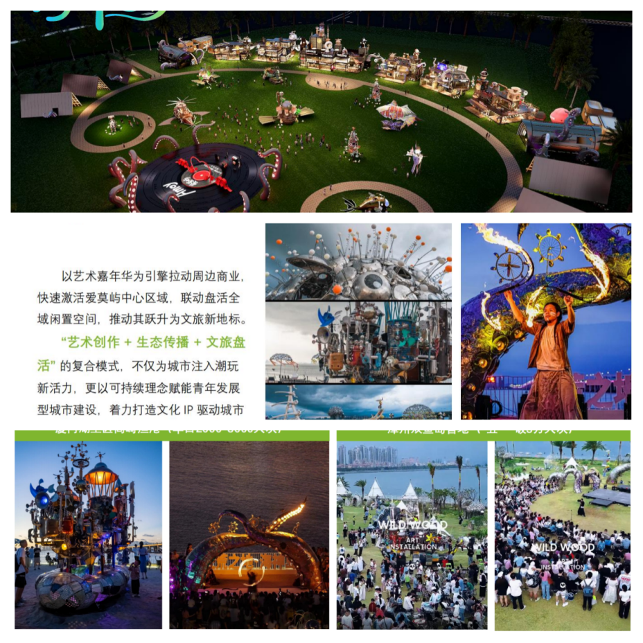 爱莫屿效果图(项目方供图) 创新探索 将荒芜空地打造成艺术文旅高地 在爱莫屿项目正式启动之前,这片坐落于厦门集美片区的土地,曾是一片杂草丛生的荒芜空地。各类杂草肆意疯长,枯枝落叶堆积,不仅影响周边人居环境风貌,也造成了土地资源的浪费,与区域整体发展格调格格不入。对此,业主单位融通农发公司集美片区主动担当、积极作为,坚决响应属地政府关于环境综合治理的号召,立足片区资源禀赋,决定对这片荒芜空地进行系统性改造与高效活化利用。 为实现生态效益与文旅价值的双赢,业主单位特意邀请在城市更新领域拥有丰富经验的高彬团队携手共建,共同探索打造以生态环保为核心主题、兼具艺术气息与文旅功能的特色高地,助力填补区域生态文旅空白,为厦门文旅产业高质量发展注入新鲜活力,也为属地环境治理与资源利用提供可借鉴的实践范例。 “爱莫屿项目也是厦门城市更新战略与生态环保理念深度融合的生动注脚,它勾勒的是‘山、海、产、城、人’相融共生的发展蓝图。城市发展的每一步都在平衡‘更新’与‘保护’,爱莫屿以‘乐园+艺术+生态+商业’的四维形态,既延续了厦门城市更新中‘民生优先’的底色——为青年群体打造‘摸鱼乌托邦’,又深化了‘生态赋能产业’的路径,让城市更新不再是简单的空间改造,而是存量价值重构、生态理念传递、民生需求满足的系统工程。”高彬表示,这份实践,不仅为爱莫屿赋予了超越文旅地标的城市意义,更彰显了厦门在高质量发展中,以创新思维破解“保护与开发”难题的治理智慧。