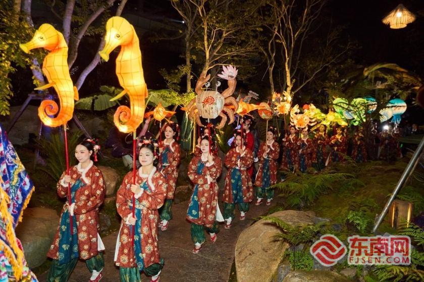 夜幕下,身着传统华服的表演者手持鱼灯列队巡游。主办方供图 |